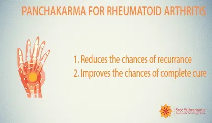 According to classical textbooks of ayurveda, Panchakarma refers to ShodhanaChikitsa which targets violation of the pathogenesis in rheumatoid arthritis. It is the only method which targets the causative mechanism of rheumatoid arthritisi.e. ama which is accumulated at the affected sites due to vata dosha.